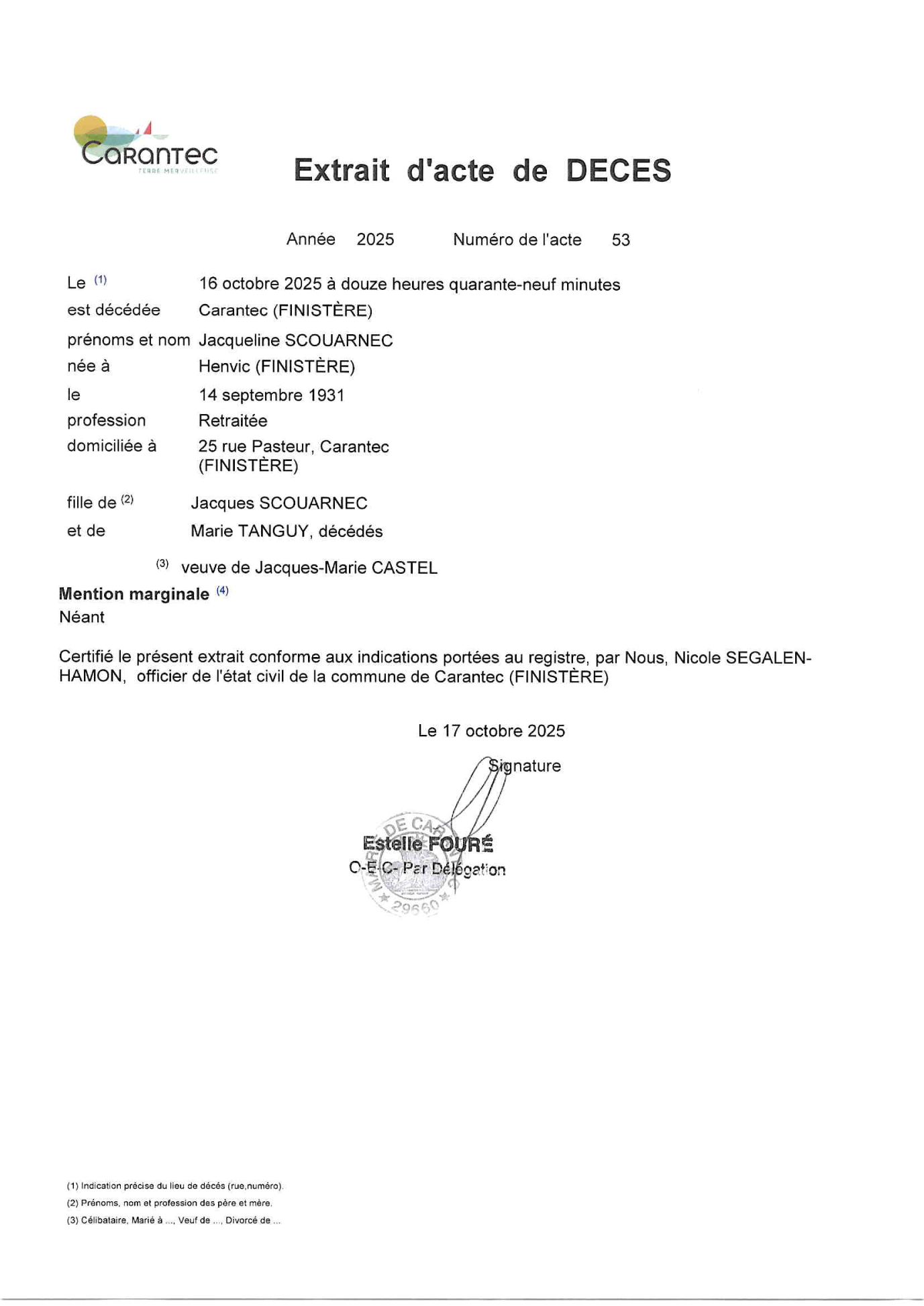 Madame Jacqueline SCOUARNEC