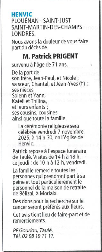 Décédé à Morlaix (29600, France) le mardi 4 novembre 2025 à l'âge de 71 ans