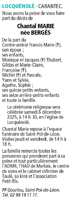 Décédée à Locquénolé (29670, France) le lundi 1 décembre 2025 à l'âge de 92 ans