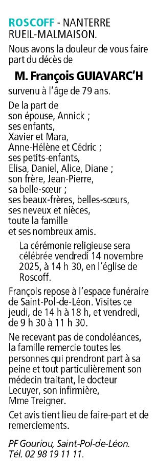 Décédé à Morlaix (29600, France) le mardi 11 novembre 2025 à l'âge de 79 ans