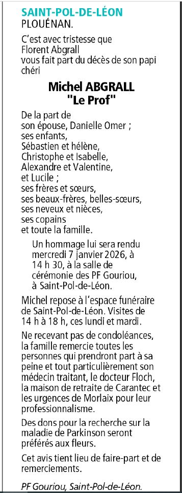 Décédé à Morlaix (29600, France) le dimanche 4 janvier 2026 à l'âge de 78 ans