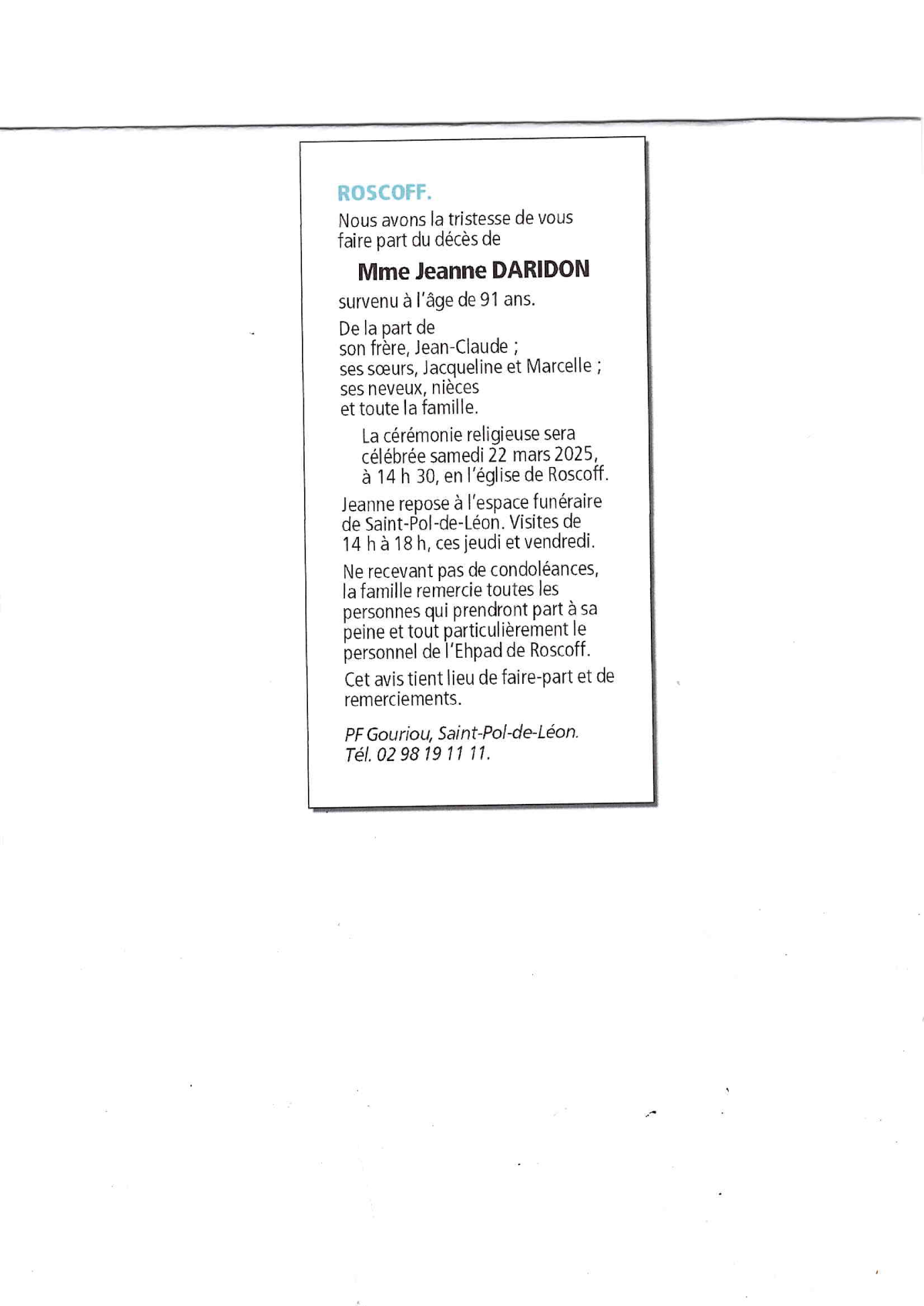 Décédée à Roscoff (29680, France) le mardi 18 mars 2025 à l'âge de 91 ans