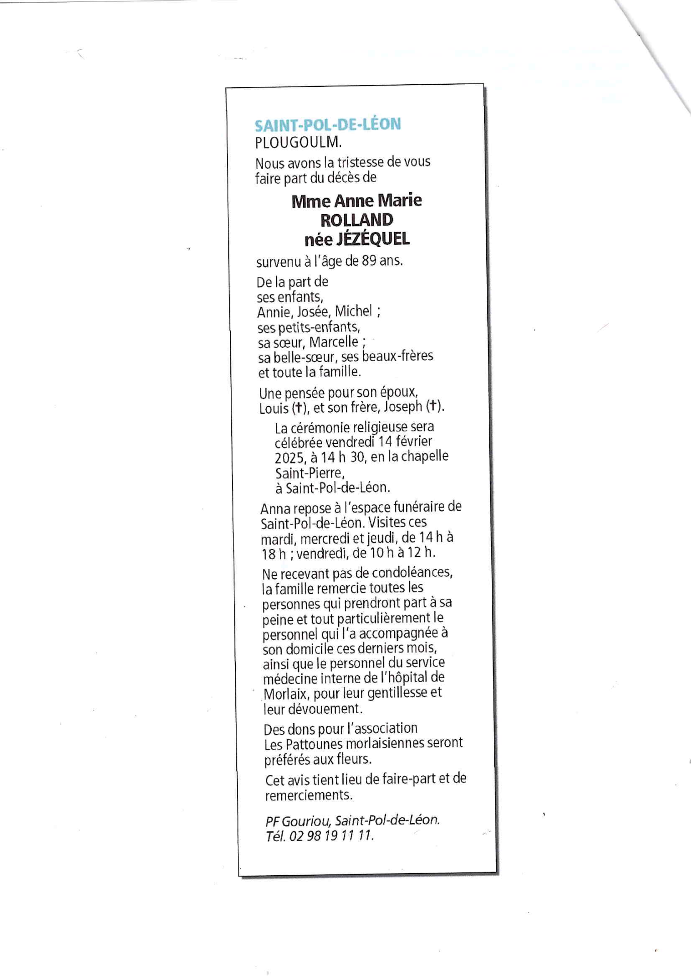Madame Anne Marie ROLLAND née JÉZÉQUEL